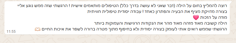 • חיבור אישי ואמיתי, מרחב בטוח להקשבה.